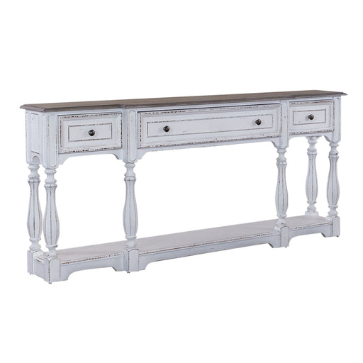Magnolia Manor 72 Inch Hall Console Table in Antique White Base w/ Weathered Bark Tops