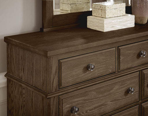 This dresser puts the dream of a casual bedroom retreat beautifully within reach. A warm light brown finish over replicated hickory grain exudes a ...