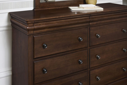 Merging traditional elegance with modern comfort, this dresser takes your bedroom retreat to the next level. Serpentine curves, ash swirl veneer in...