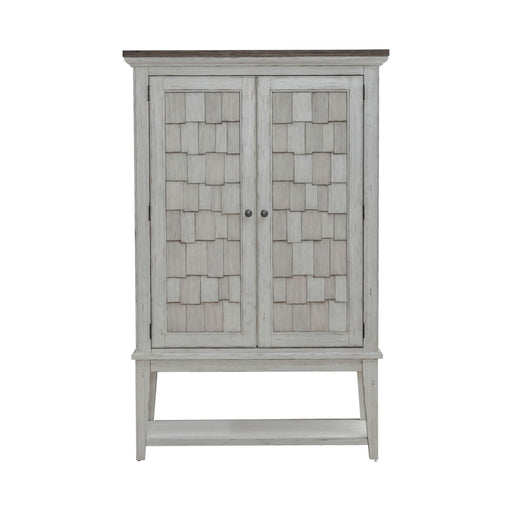 Liberty Furniture River Place Bar Cabinet in Riverstone White & Tobacco EST SHIP TIME APPX 4 WEEKS