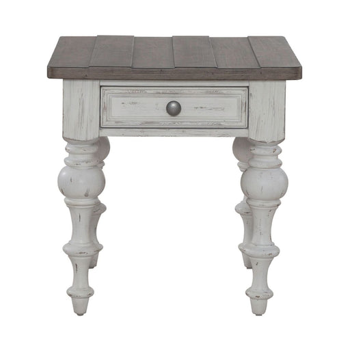 Liberty Furniture Laurel Bluff End Table in Antique White with Dusty Gray Top