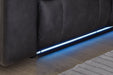 • Ambient red, white and blue LED lighting; touch button control in arm